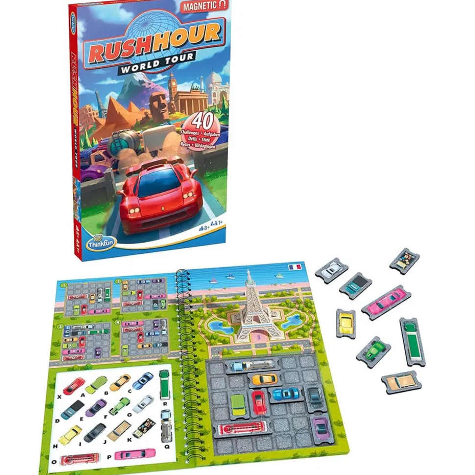 Introducing the exhilarating and magnetic puzzle experience, Rush Hour World Tour Magnetic Travel Puzzle!
